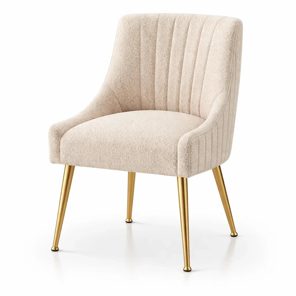 Chaise de salle à manger en tissu beige avec pieds en métal doré
