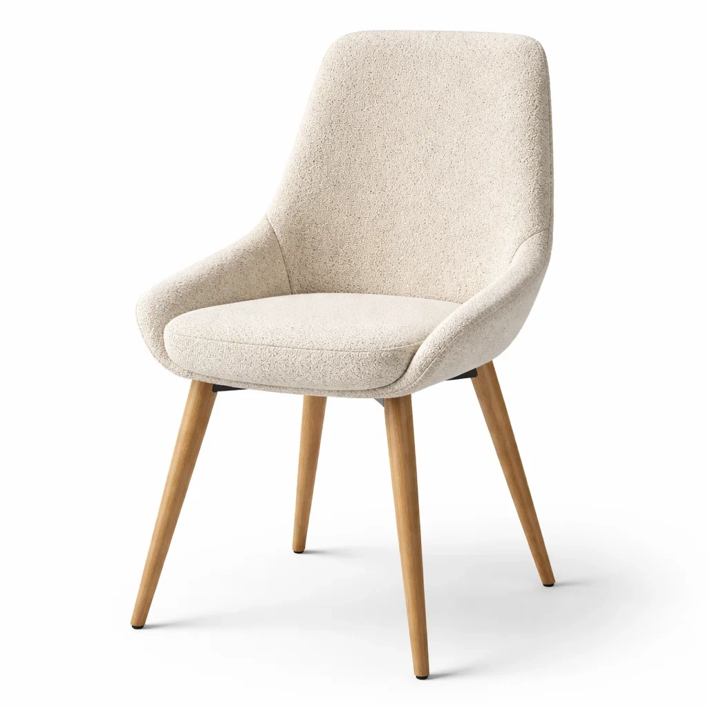 Chaise de salle à manger en chêne avec tissu bouclé beige