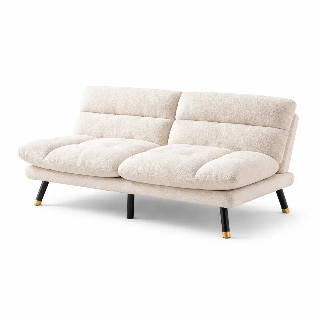 Canapé convertible en tissu peluche beige avec pieds en métal