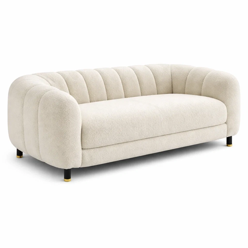 Ce canapé trois places est recouvert de tissu bouclé en polyester. Le rembourrage est en mousse polyuréthane haute densité pour un soutien optimal.