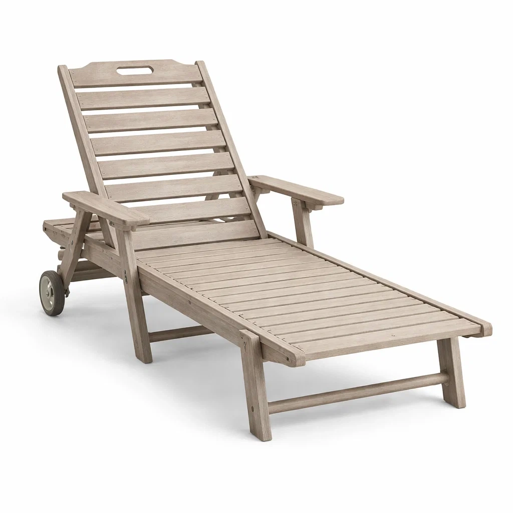 Chaise longue fabriquée en bois de teck massif.